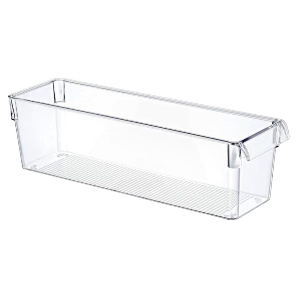 This product is an organizer designed to store and organize items in the refrigerator. The organizer is made of transparent plastic, which allows you to see the inside of the items placed inside it. The organizer has dimensions of 36x 10x H 10 cm, providing enough space and organization to place different products in the refrigerator. The transparent refrigerator organizer is a great choice to improve the organization of the refrigerator space. With its convenient dimensions and durable design, this organizer offers a practical and functional solution to store and organize items efficiently and easily.
