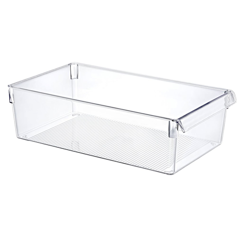 This product is an organizer designed to store and organize items in the refrigerator. The organizer is made of transparent plastic, which allows you to see the inside of the items placed inside it. The organizer has dimensions of 36x 20.5x H 10cm, providing enough space and organization to place different products in the refrigerator. The transparent refrigerator organizer is a great choice to improve the organization of the refrigerator space. With its convenient dimensions and durable design, this organizer offers a practical and functional solution to store and organize items efficiently and easily.