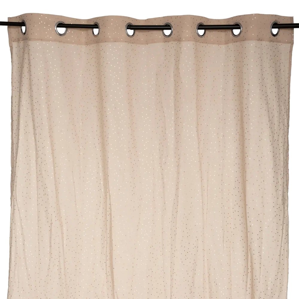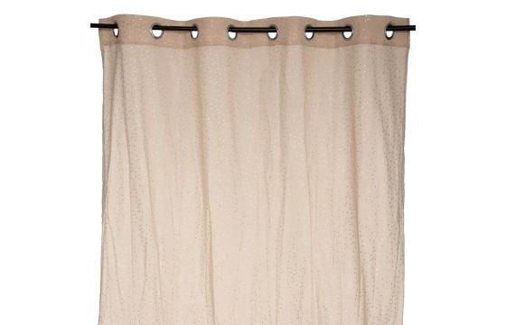 "Full curtain, made with quality cotton and is in beige color. The curtain has standardized dimensions and is 140x250 cm (width x height).