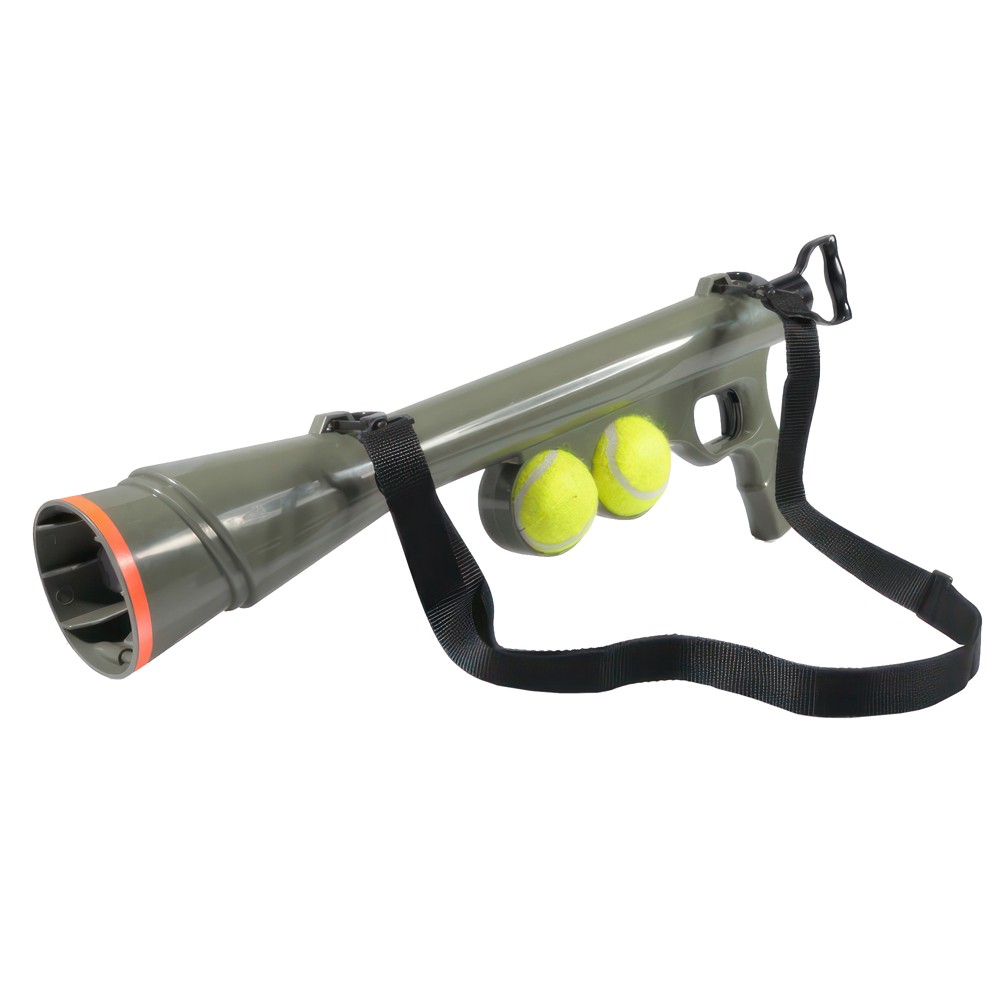 Designed to encourage your dog’s movement. It helps to improve the interaction between you and your four-legged friend. It can store 2 tennis balls at a time.