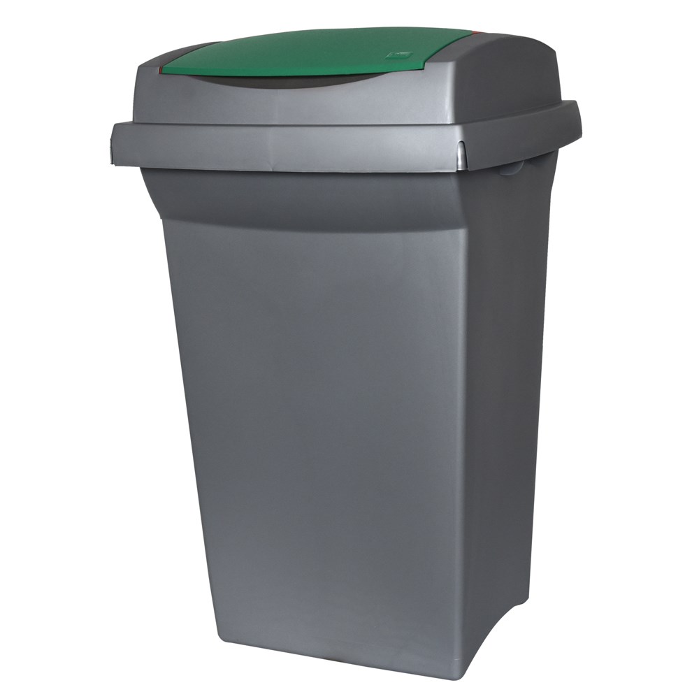 Garbage bin, 50 lt, plastic, grey, green lid, 43x39xH68 cm