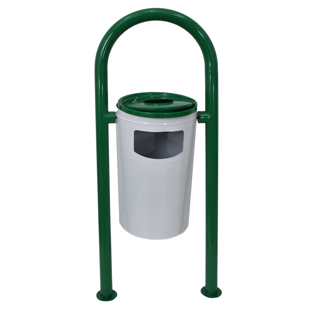 Garbage bin, metal, white/green, 50x48xH115 cm