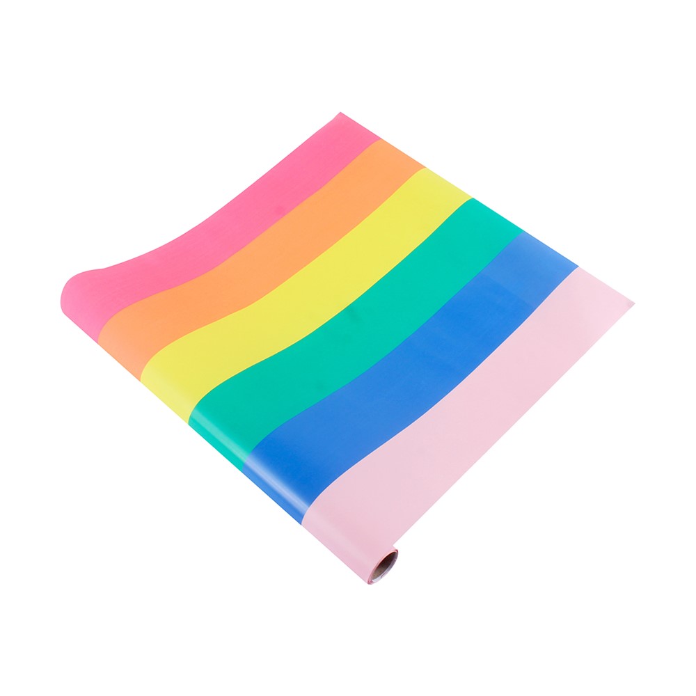 Gift wrapping paper, made of durable paper material, with dimensions of 45x150 cm, with rainbow design in different colors. The wrapping paper can be used for wrapping or decorating gift boxes, for decorating various spaces, for making various artworks, origami works, etc. This product is suitable for use during festive events, birthdays, etc.