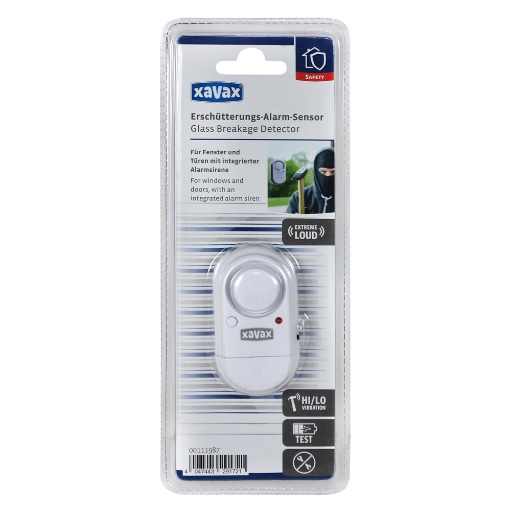 Xavax 111987 is a sensor to detect glass breaking. It provides maximum reliability and ignores any other sound/noisy but glass breaking, since it alerts when a detected sound matches one of the variety glass breaking sound images recorded in its memory. F