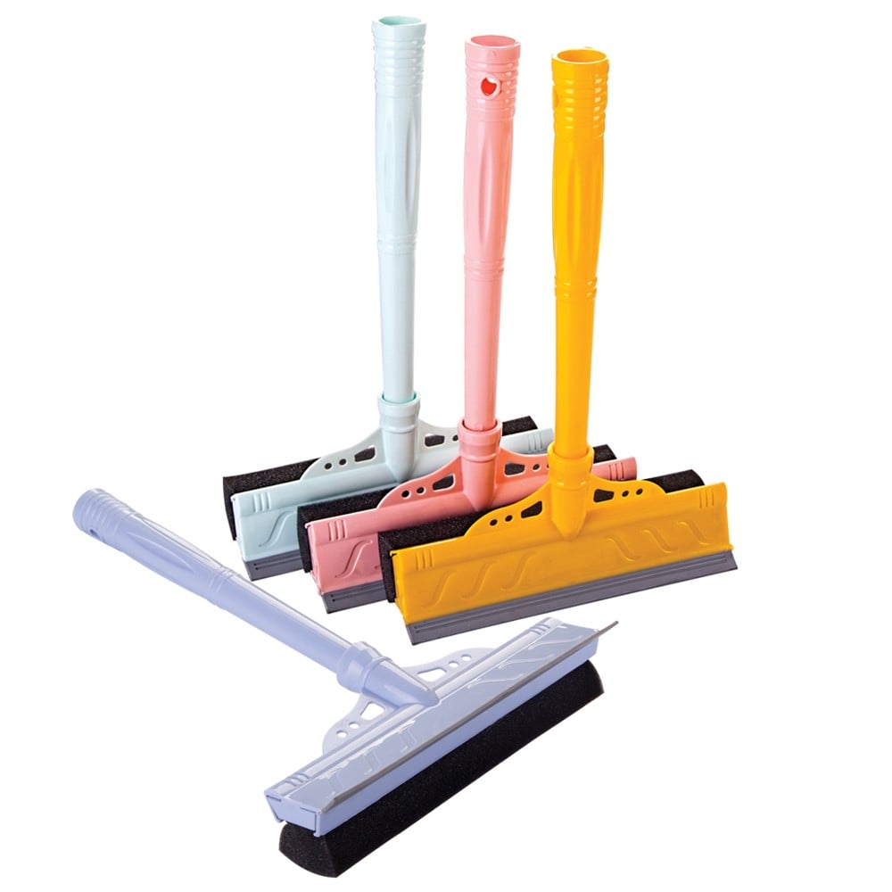 Glass cleaner with a stick, made of plastic material, with a sponge and a drying rubber. Thanks to this accessory, cleaning the windows will be easier and more practical.