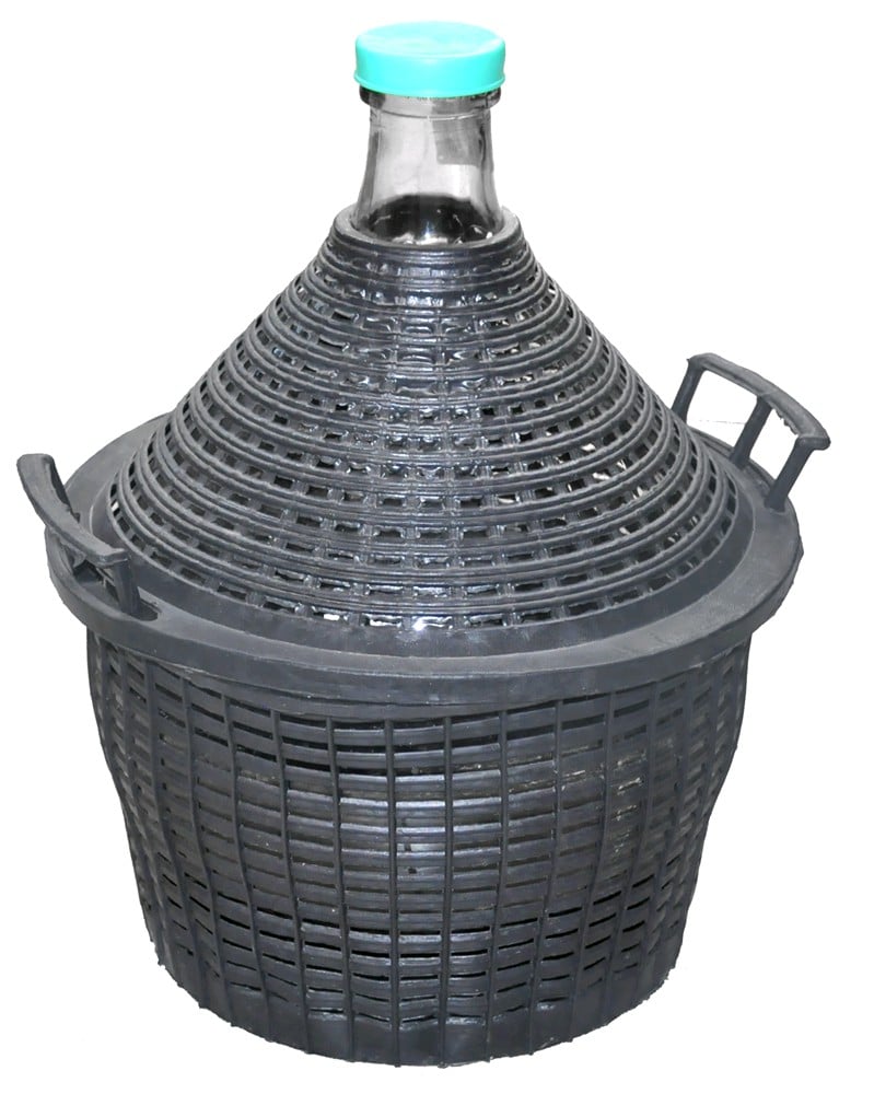 Glass Decanter 10L with fillet cup. It is used widely for storing different liquids such as brandy, wine, etc. Top quality product and hygienically clean. The plastic knitting protects the decanter form mechanical strokes