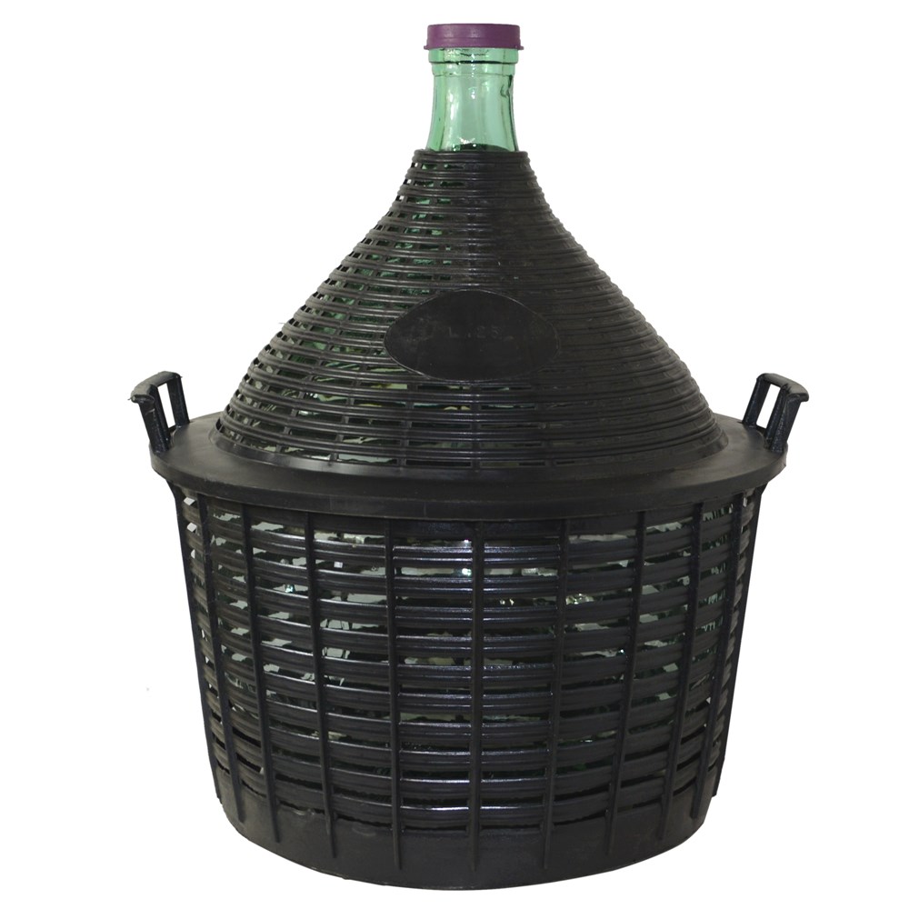 Glass Decanter 25 l with plastic knitting. It is used for storing various drinks, such as brandy, wine, oil, etc. With plastic knitting, which enables darkening and protects it from external damage.