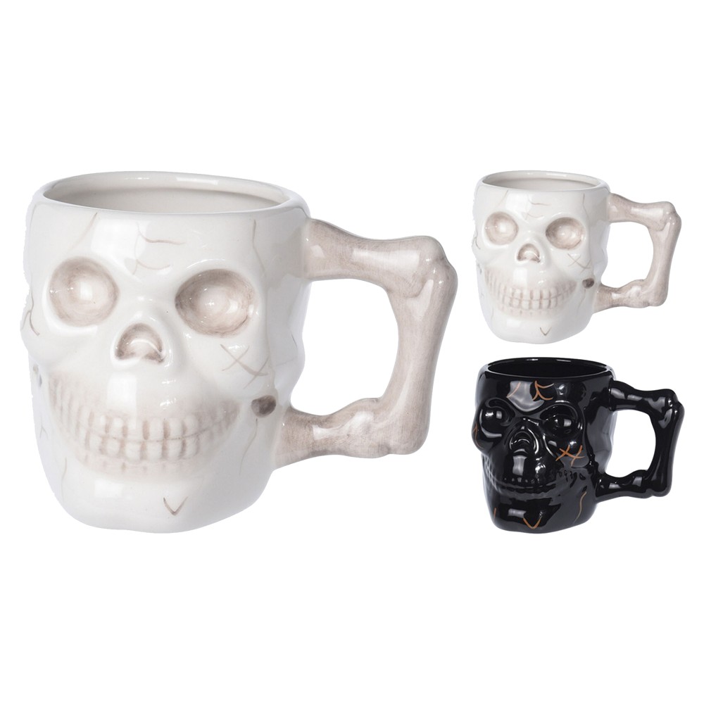 Glass with skull decoration, made of ceramic material, size 13x9.5 cm. This glass can be used for serving and Halloween decorations. It comes in two colors, black and white. The package contains 1 piece