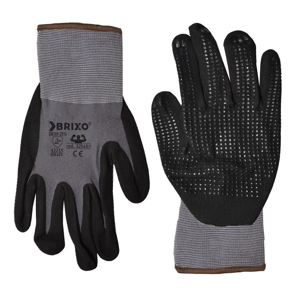 "NYLON-spandex back, sandblasted and doted nitrile palm