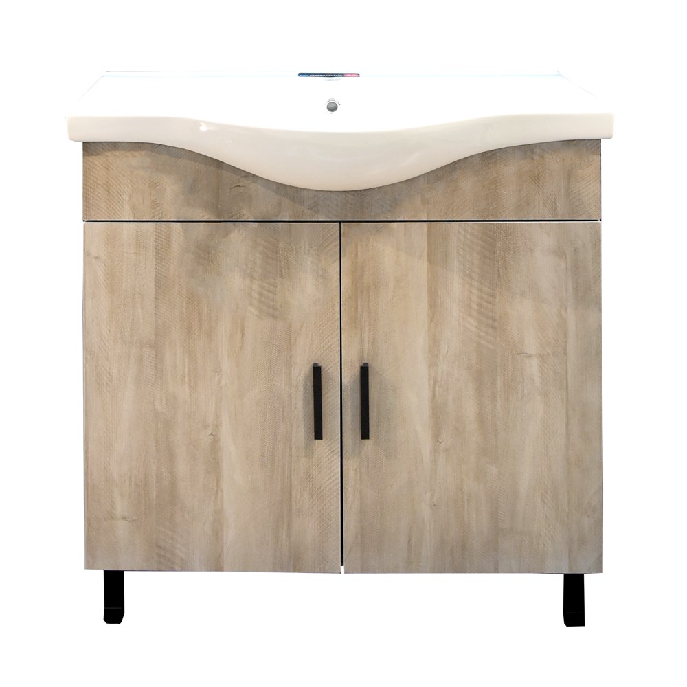 The complete set of bathroom furniture presents an elegant design that will rejuvenate your bathroom. The porcelain basin offers a stylish design easy to clean and durable surfaces for long-lasting beauty for medium and large spaces of your bathroom. The collections material is melamine which offers high-humidity resistance.This color can be easy combined with modern tiles of different monochrome colors.his is a collection that includes: basin, basin- cabinet, mirror mounted on shelf. All of the components are pre-assembled and ready-to-install in a quick and easy way. With this set you can remodel your bathroom anytime your space needs even more storage.