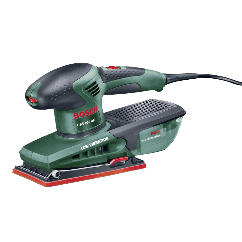 The ideal solution for good quality sanding and fast sanding progress with powerful 200 watt motor and a sanding surface of 92x182 mm.It performs a clean work thanks to Bosch Microfilter System: the built-in dust extraction element sucks the dust directly into the Microfilter Box, which comes complete with the tool.It is good handled, also for left-handers.