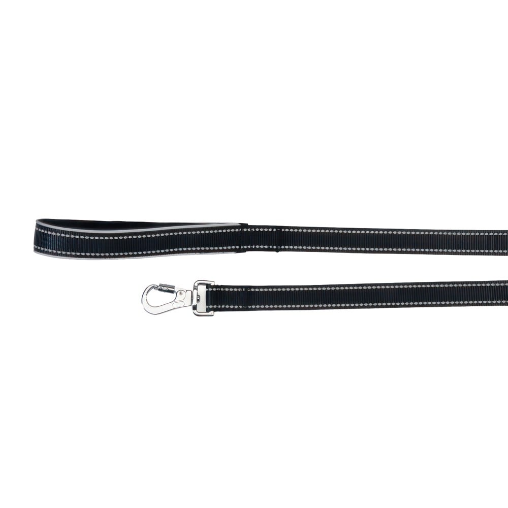 Reflective leashes with neoprene handle and safety carabiner. Available in 3 different sizes and 6 colours, they are perfect to combine with the reflective 5-way harnesses