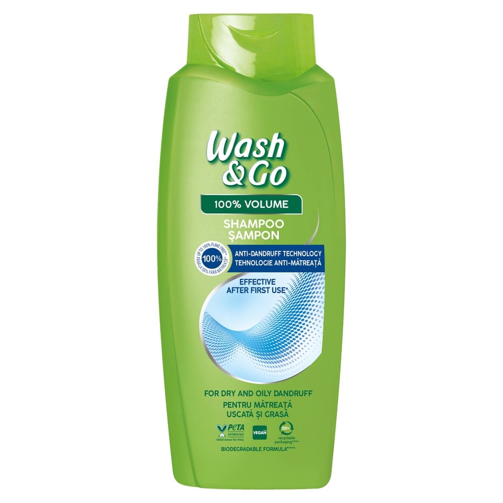 Hair shampoo for volume, with anti-dandruff action, Wash & Go, plastikë, 675 ml, green, 1 piece