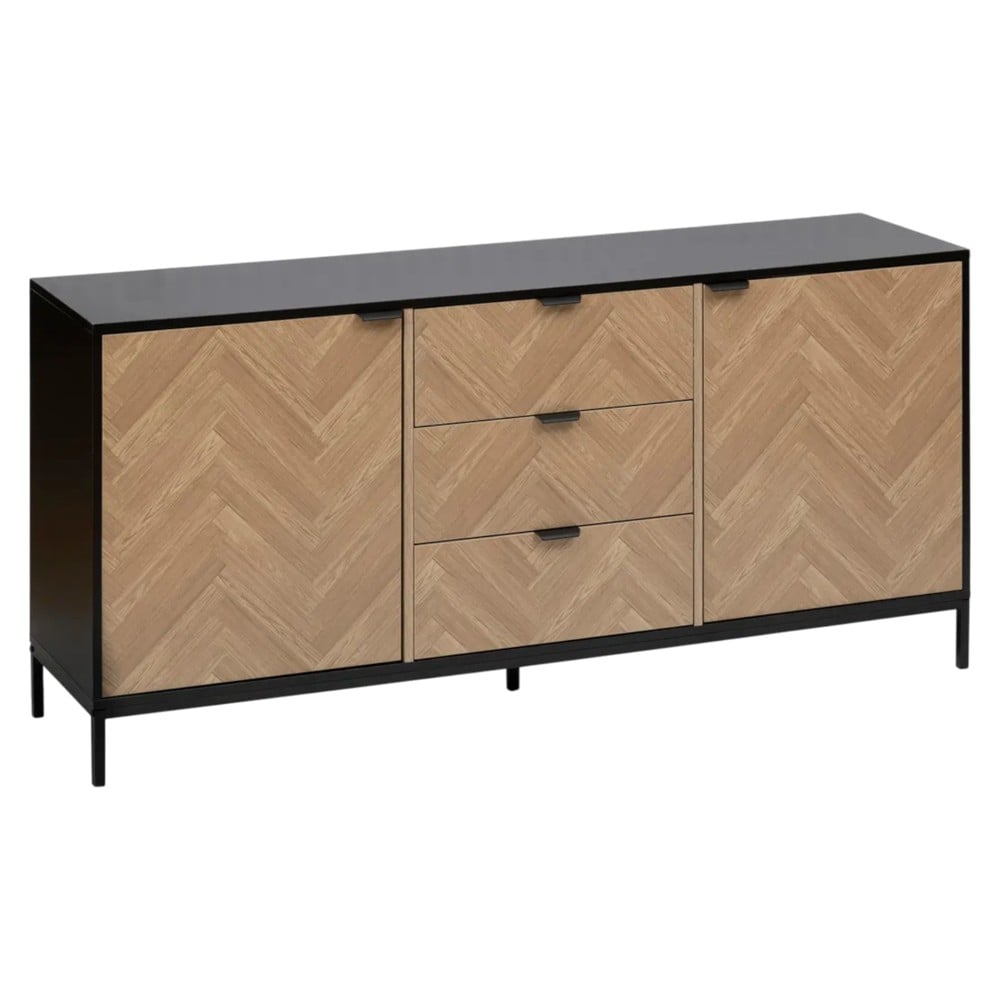 Classic, modern and elegant is the only way to describe the "Chevron" corridor furniture produced by the 5FIVE Simply Smart brand. The high-quality melamine material combined with the modern style in black and beige and the wooden design front is a practical solution for your environment. Consisting of 2 cupboards and 3 drawers for storage. The metal handles add finesse to this piece of furniture. Dimensions, height: 75 cm, width: 160 cm, depth: 40 cm.