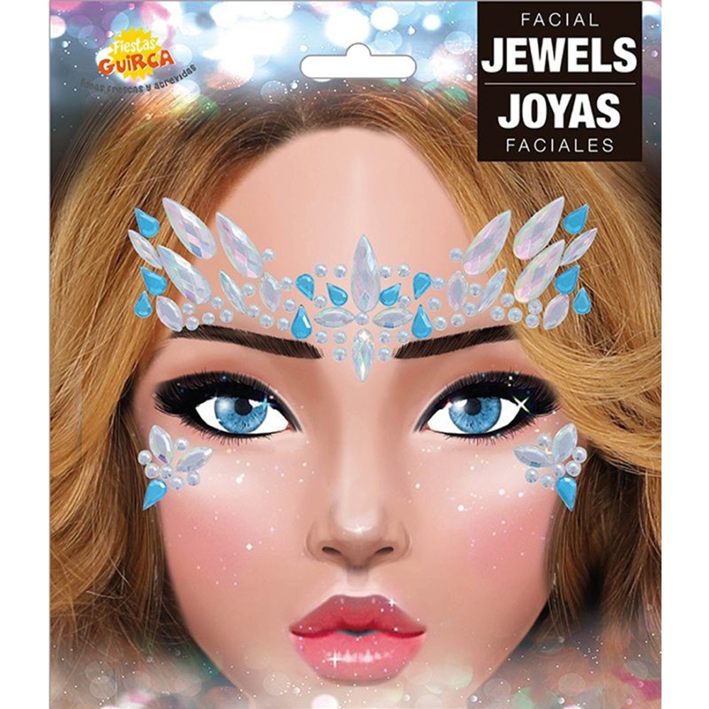 Gemstone set, made of plastic material, in different colors, equipped with adhesive on the back. They are used to decorate the face during Halloween or carnival parties.