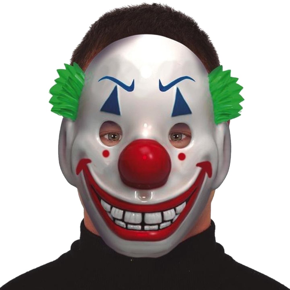 Halloween mask smiling clown, plastic, white,red, green, one-size.