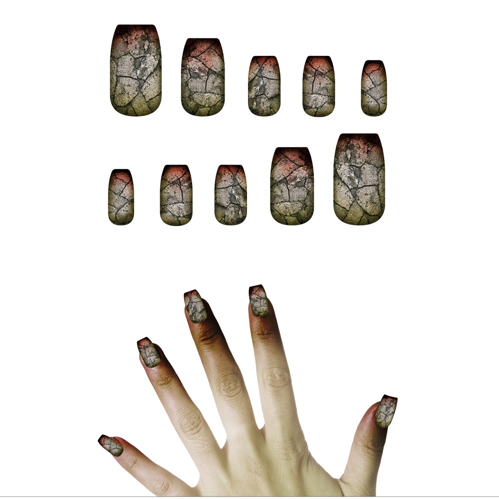 Zombie themed Halloween nail stickers are a great way to personalize your nails and add a spooky and spooky feel to your hands this Halloween. These stickers are designed with menacing and terrifying motifs that fit the Halloween period. They are of different colors and are suitable for creatively personalizing your nails. Plus, they're self-adhesive, so they're easy to put on and take off after you're done with your Halloween party.