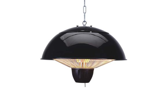 For outdoor use, suitable for immediate limited heating. • Halogen heater 1500W. • Aluminum body, steel protection grille. • Reflector in aluminum. • ON / OFF switch by cord (60cm) • Support with metal chain. • Power cord. • Degree of protection IP34
