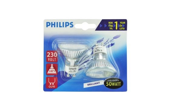Halogen lamp is used for a variety of lighting applications inside your home. This bulb is known for its expanded light output and exceptional optimum color rendition making it ideal for accent lighting, display and task lighting applications.This fhalogen bulb is for use on 230 volts using 50 watts of energy. It has a GU10 twist-lock bi-pin base