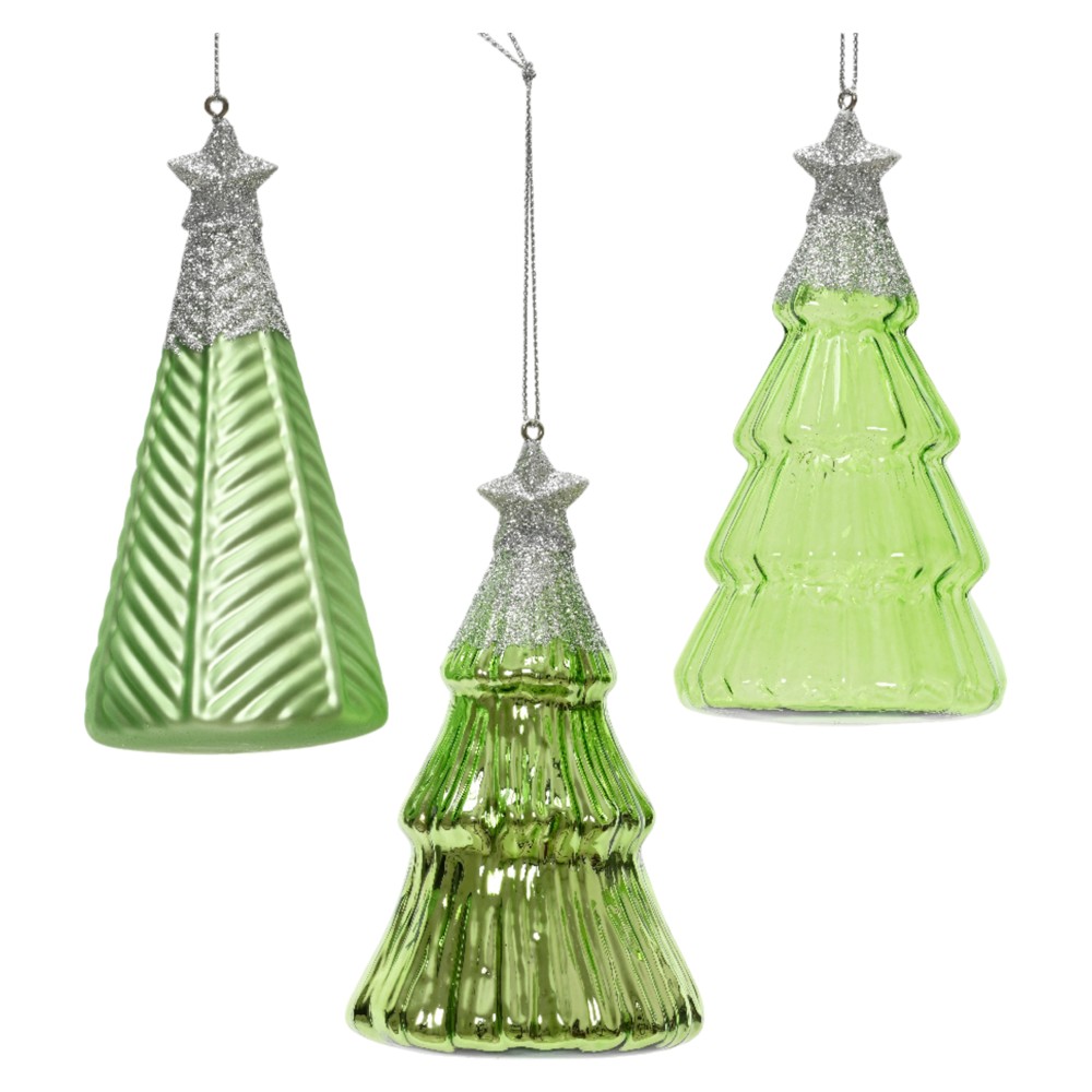 You're reviewing:Hanging decorative object, New Year tree, glass, green color with silver, H12.6 cm