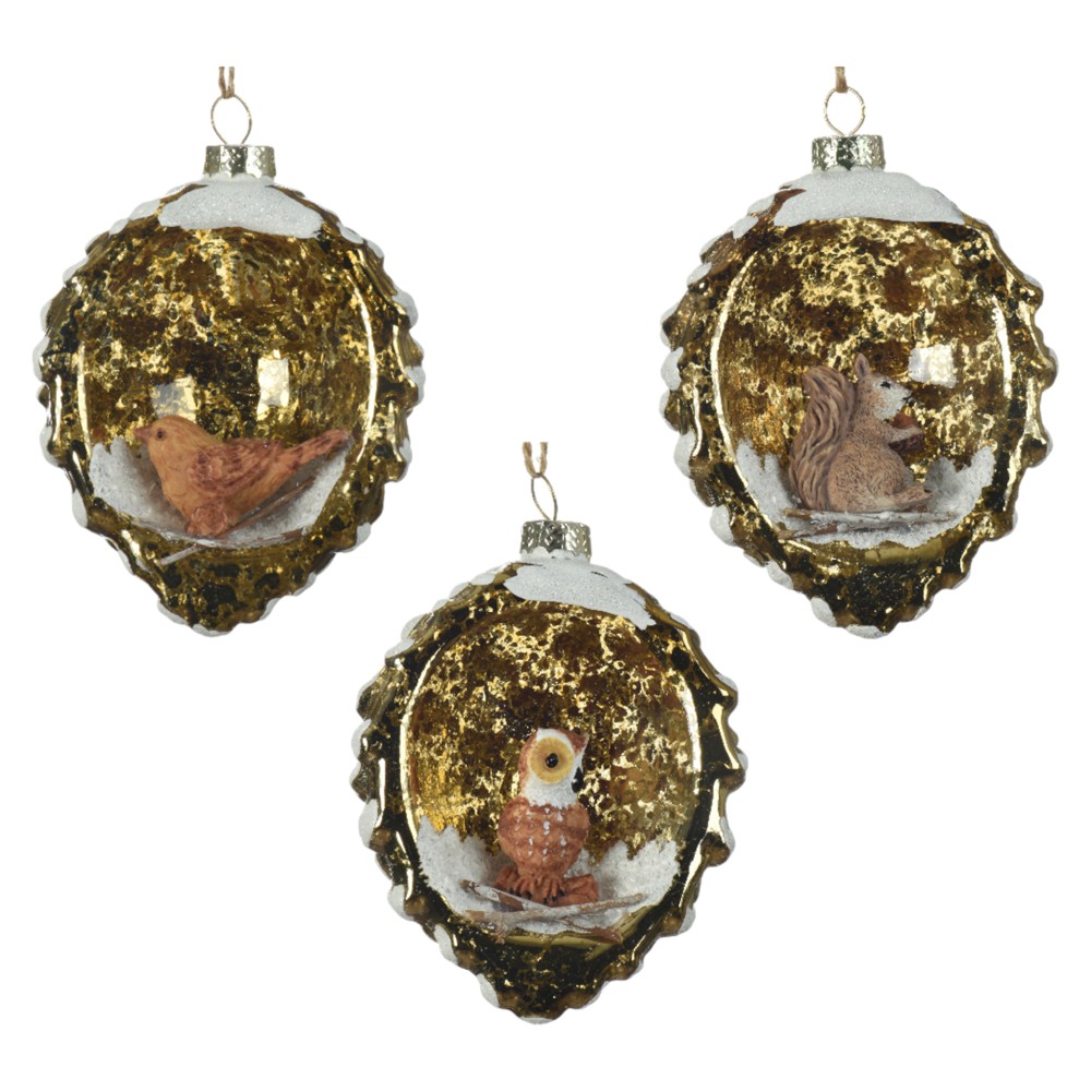 You're reviewing:Hanging decorative object, pine vase with animals, glass, white and gold color, D5 x H 7 cm