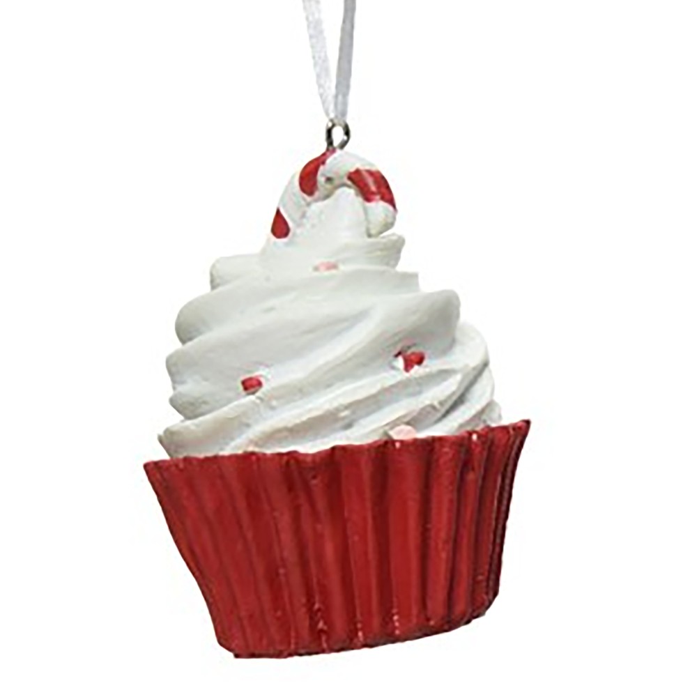 Hanging decorative object, polyresin, red/white, 8.9 cm