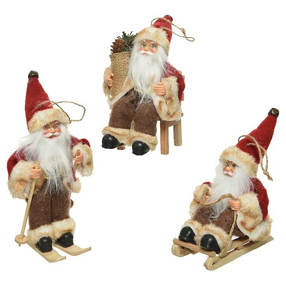 Hanging decorative Santa, polyester/wood, red, H18 cm