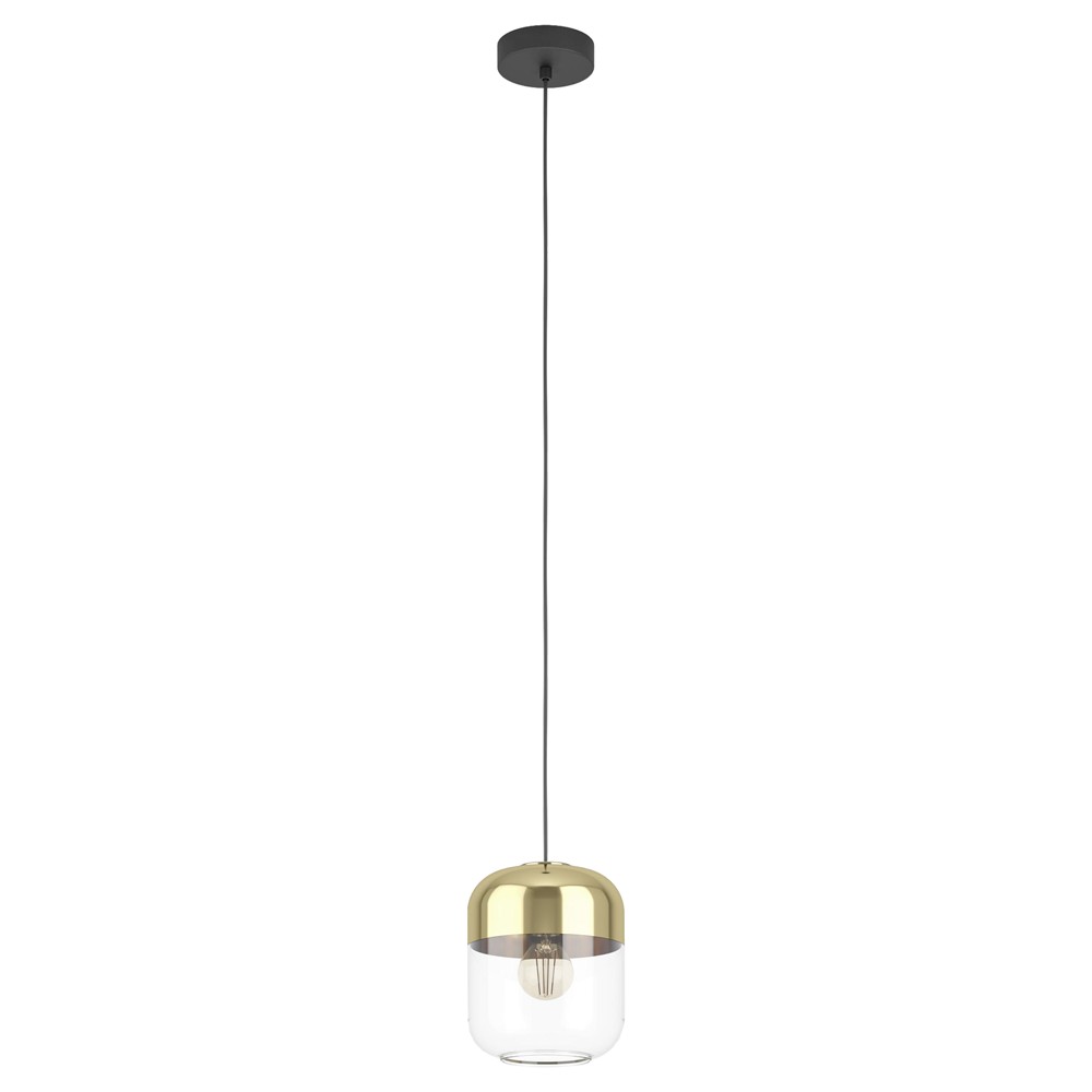 Hanging lamp MARYVILLA, E27, 1x40W, H110xLD17 cm, black/bronze. A unique and modern design, created to be suitable with different indoor environments such as living room, bedroom, etc. High-quality and resistant steel material in black color, and cylindrical lamp heads in gold color made of transparent glass.