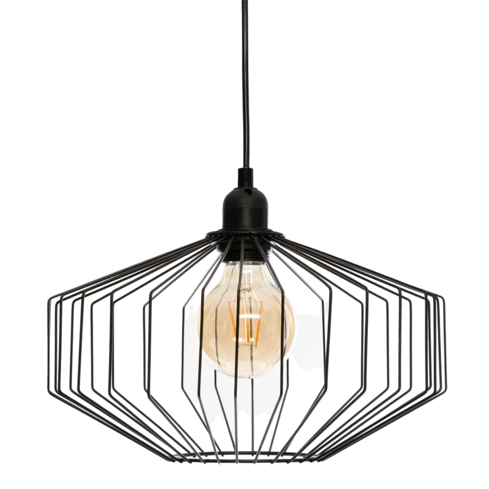 The pendant lamp with an E27 bulb offers you the possibility of using the type of lighting you want. It is made of black metal material.