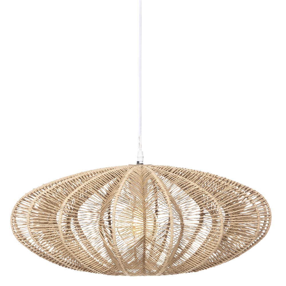 Hanging luminaire, made of metal and linen. Used in, bars, restaurants, hotels, verandas, etc. Its special structure allows it to combine quite well in environments where wooden decorations, bricks, etc. predominate. 15 W LED lamps are suggested, illuminating an area of 15 m2.