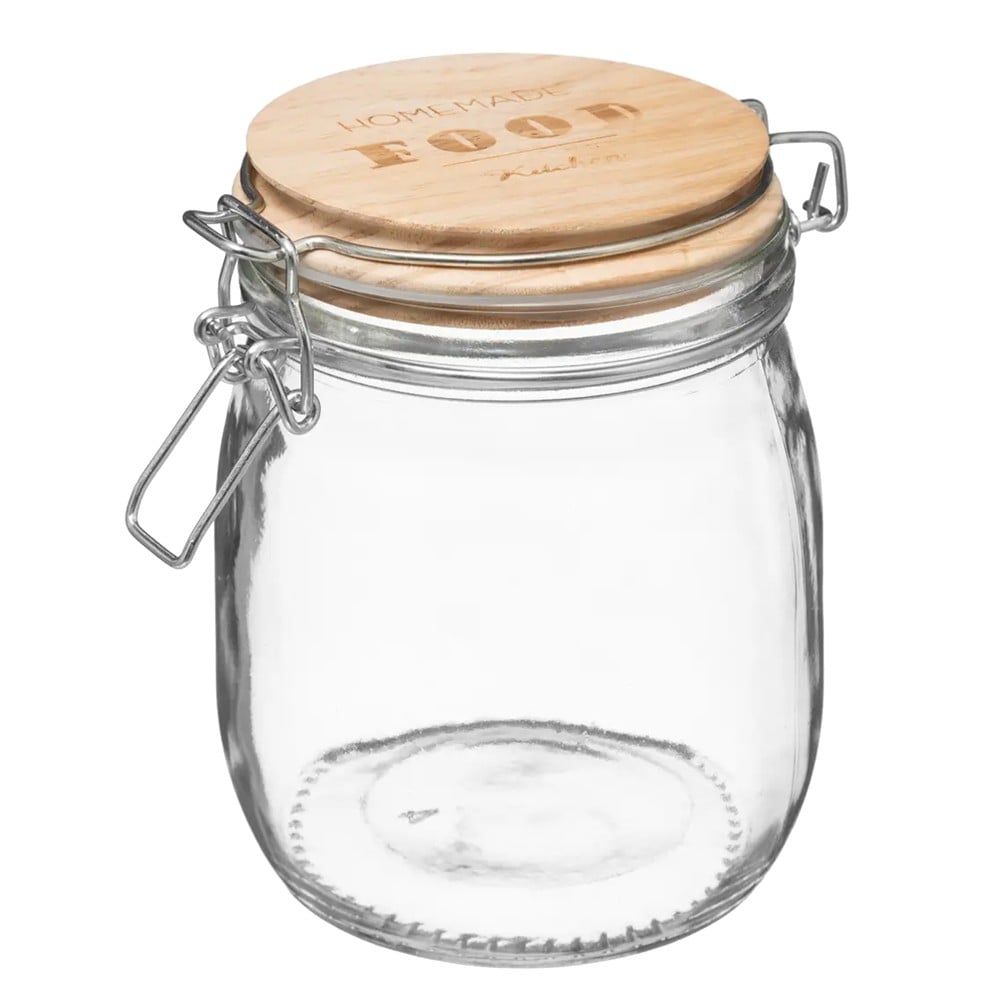 Hermetic jar, glass/bamboo, transparent/brown, Dia.11xH15.5 cm / 750 ml