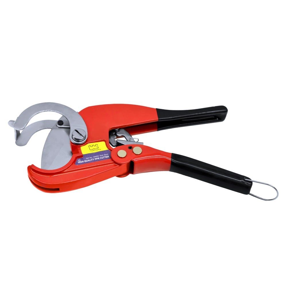 Ratcheting PVC Cutter that cuts plastic, vinyl and rubber tubing up to 42mm OD. This ratcheting-action cutter features a safety catch for your protection. Each tool comes with instructions and helpful diagrams to help guide you.
