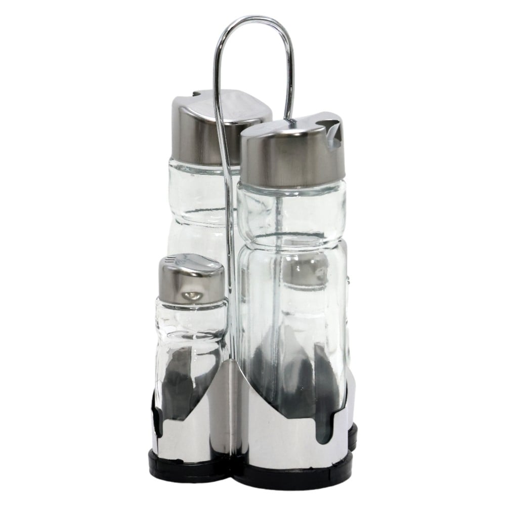 You're reviewing:Holder Oil+vinegar+salt+pepper , Glass+Metallic, transparent, L. 11 x D. 10.5 x H. 20 cm