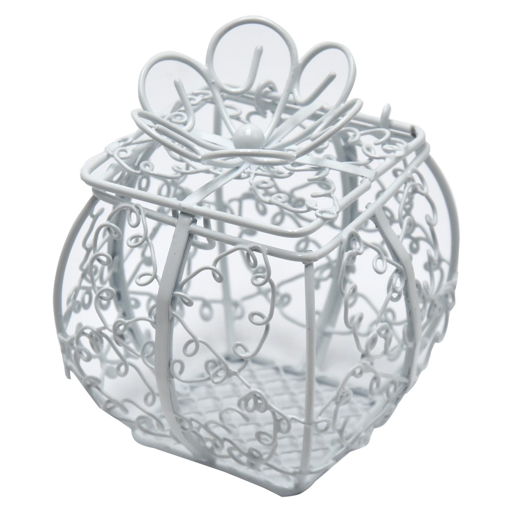 Horse carriage-shaped confetti holder, made of metal material, with dimensions of 9 cm, in white color. It is used to place chocolates, candies or other small sweets, on the occasion of various holidays, and serves as a welcome gift for guests.