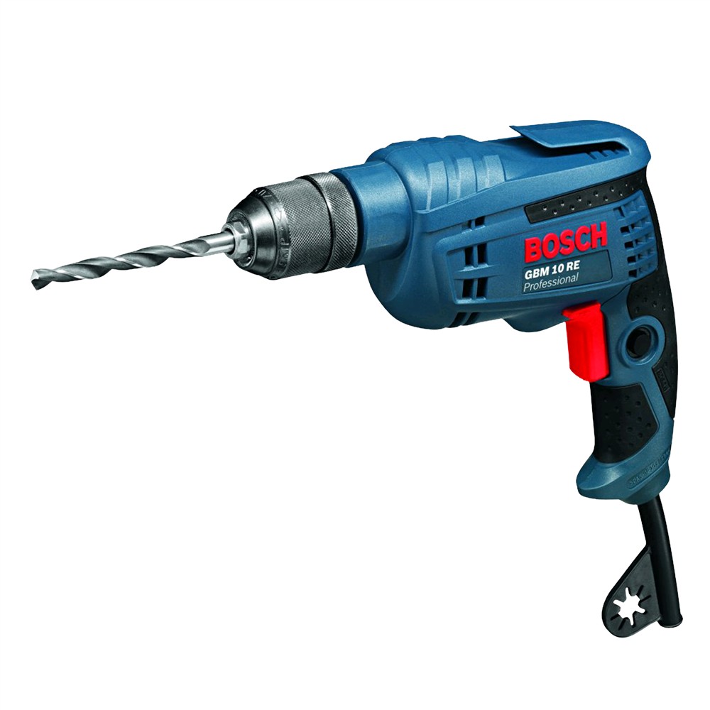 The drill GBM 10 RE Professional ia a powerful and compact tool. The powerful 600 W motor,is ideal for drilling holes up to 10 mm in diameter in metal and 25 mm in wood.It has a compact design and low weight about 1.7 kg, optimum handling in medium-duty drilling applications and electronic control for precise drilling starts.