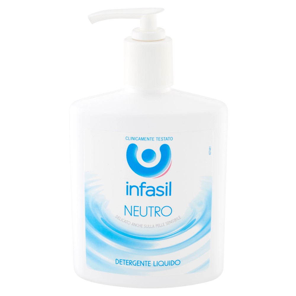 Neutral liquid detergent - mild even for the most sensitive skin - clinically tested. Clinical tests show that the formula of Infasil Neutral liquid detergent does not dry the skin and helps to maintain its natural hydration, because: it gently cleanses, leaving the skin naturally supple and soft, it does not attack the skin like normal soaps, it respects the skin's natural pH