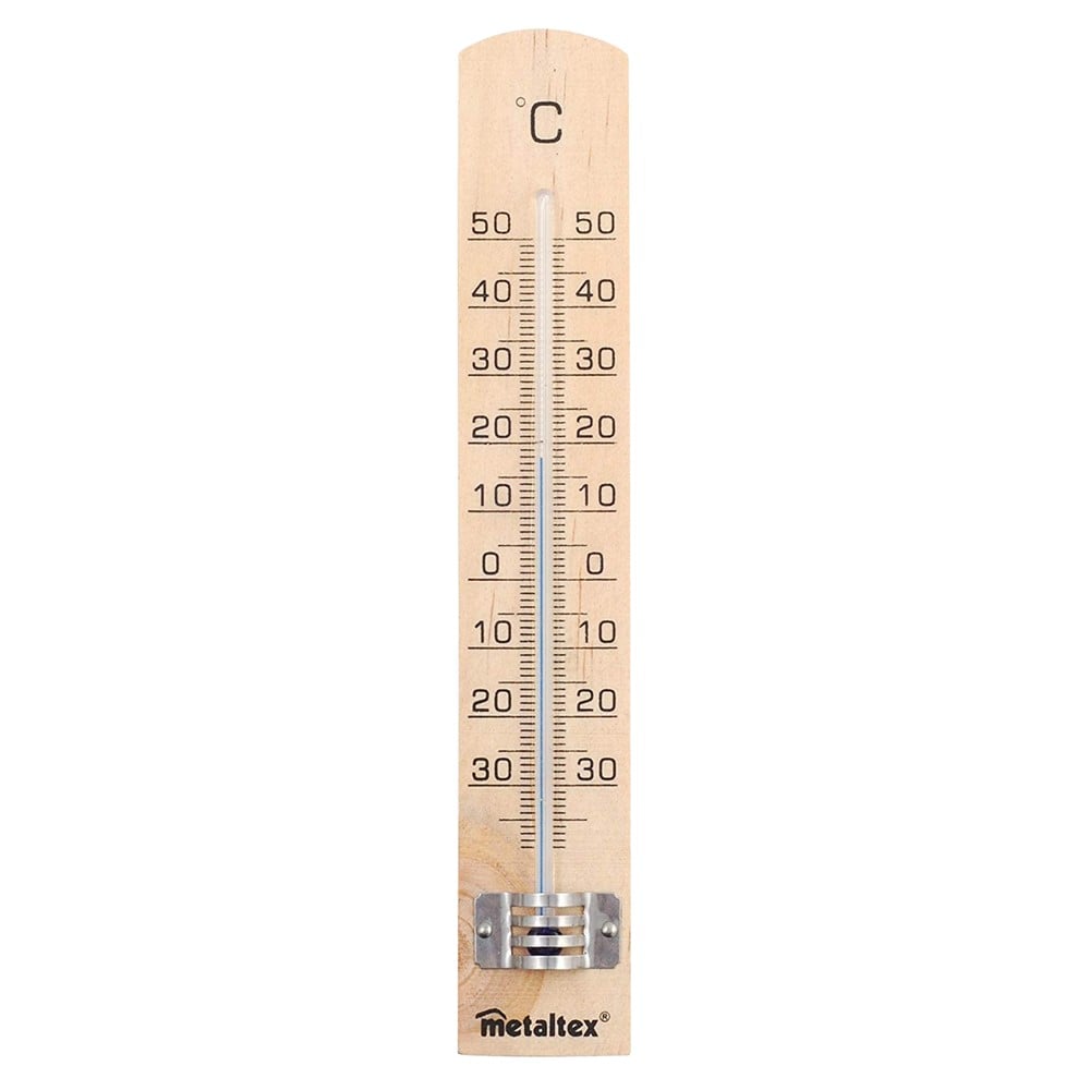 Inside thermometer, made of wood, which measures temperature very accurately. The rate ranges from -30° to +50° Celsius. The simple, easy-to-read design is a nice addition to any wall decor.