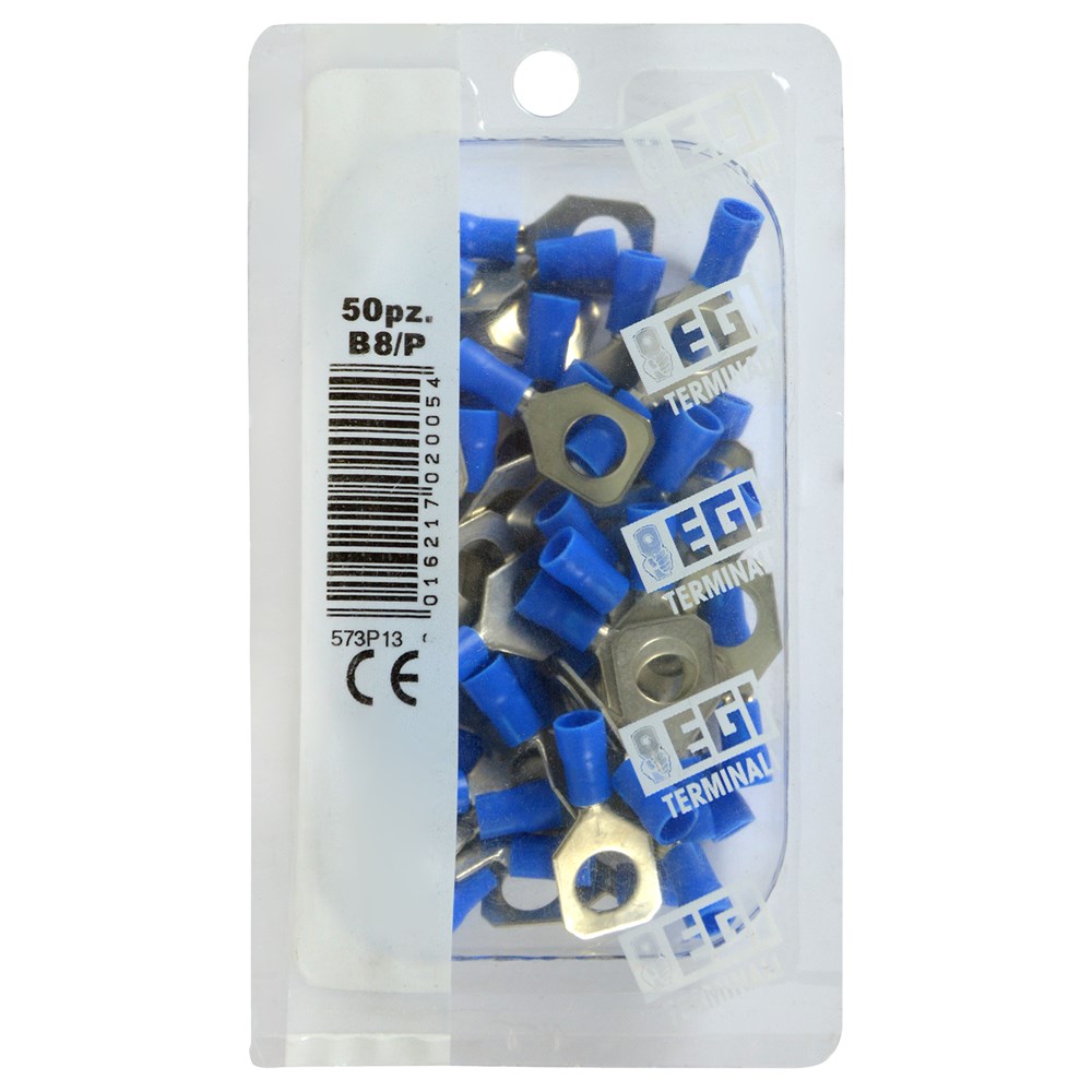 Insulated Ring Terminals 1.5-2.5mm² / 8mm, 50pc/pack