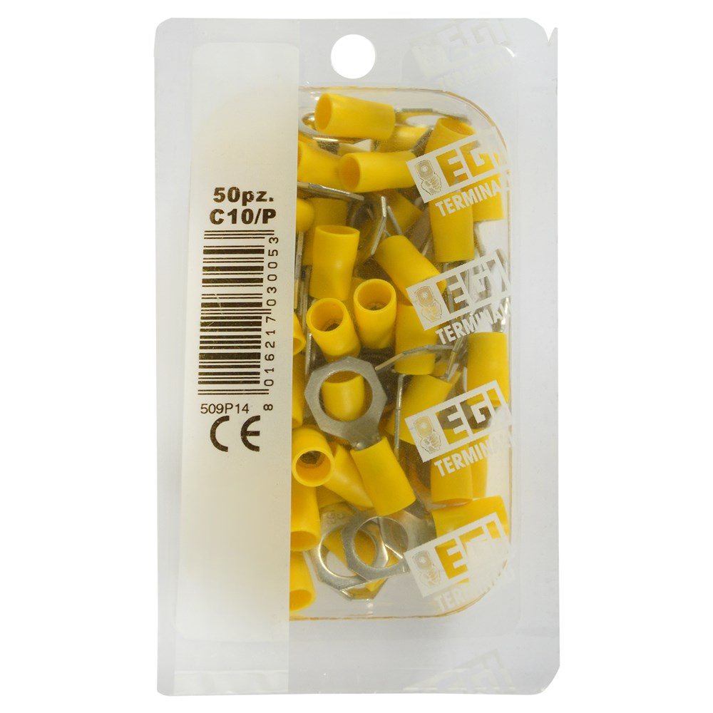 Insulated Ring Terminals 2.5-6mm² / 10mm, 50pc/pack