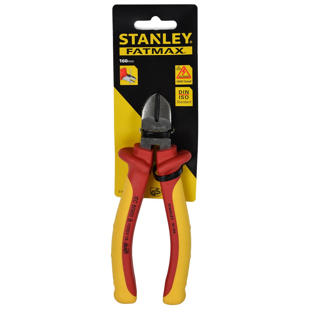 Manufactured to exacting European standards Individually tested to 10,000 volts Approved for working around live circuits that do not exceed 1,000 volts The bi-material handles offer the user improved control and grip, incorporating slip guard shoulders for additional safety Resistant to temperatures from -20° to +70°C making them ideal for use in demanding or hostile environments - See more at: http://www.toolstop.co.uk/stanley-0-84-009-vde-side-cut-plier-160mm-p22901#sthash.WGX8CbJh.dpuf