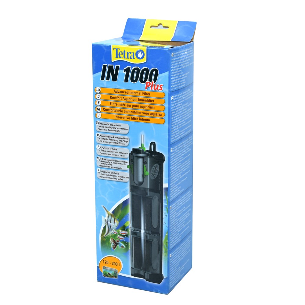 The Tetra IN 1000 plus is a useful internal filter for all aquaria up to 100 litres content. The TetraTec IN 1000 plus provides efficient mechanical and biological filtration to ensure crystal clear and pollutant free aquarium water. Feauters: removable filter cartridge for easy cleaning, adjustable air supply for optimal oxygene levels, adjustable flow rates 500 - 1000 l/h, variable outflow direction, exceptional quality and reliability, power consumption 230 V/50 Hz, 14 W, for aquariums: 120 up to 200 L.