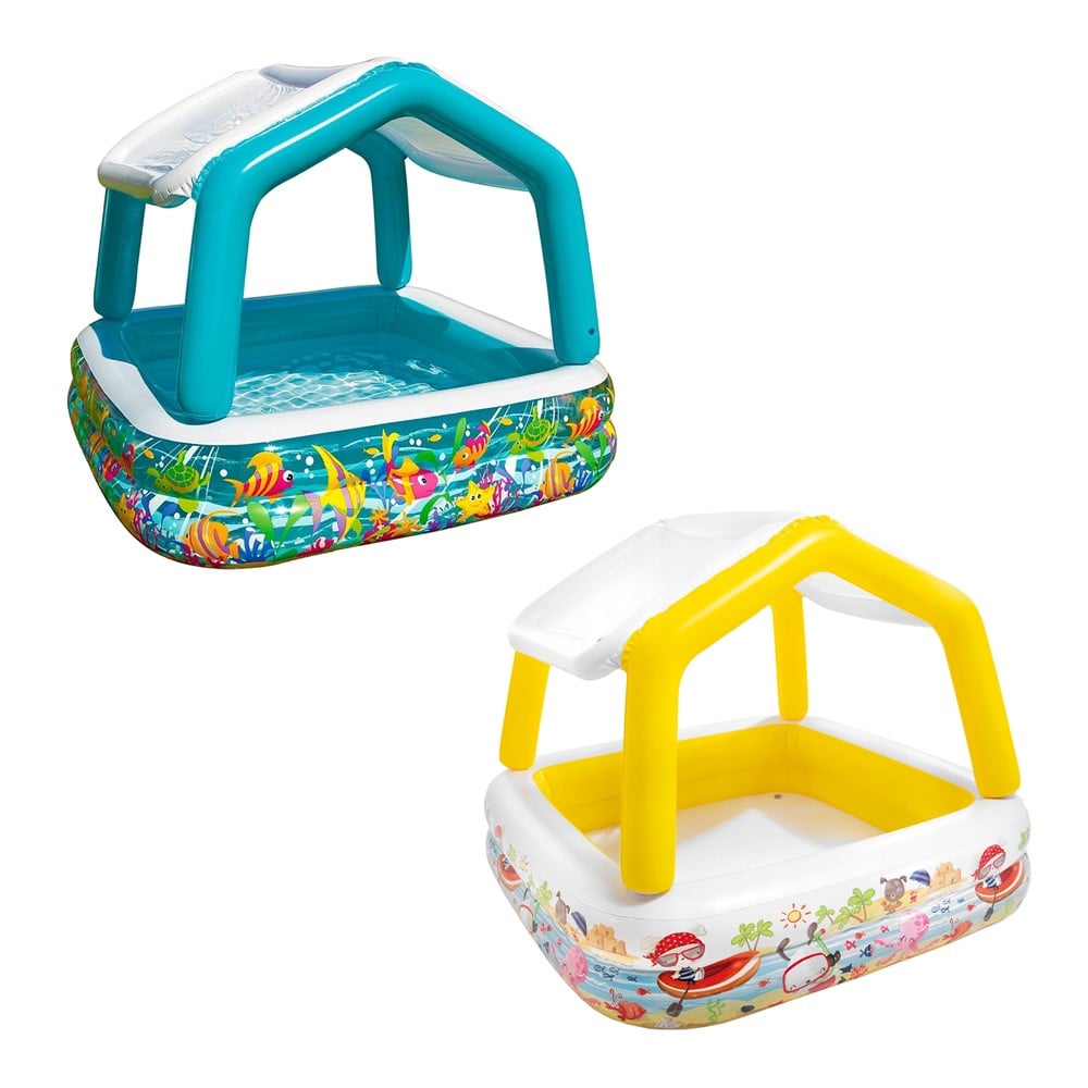 Young children can keep cool and have fun outside with this Inflatable Sun Shade Pool by Intex with detachable canopy.
