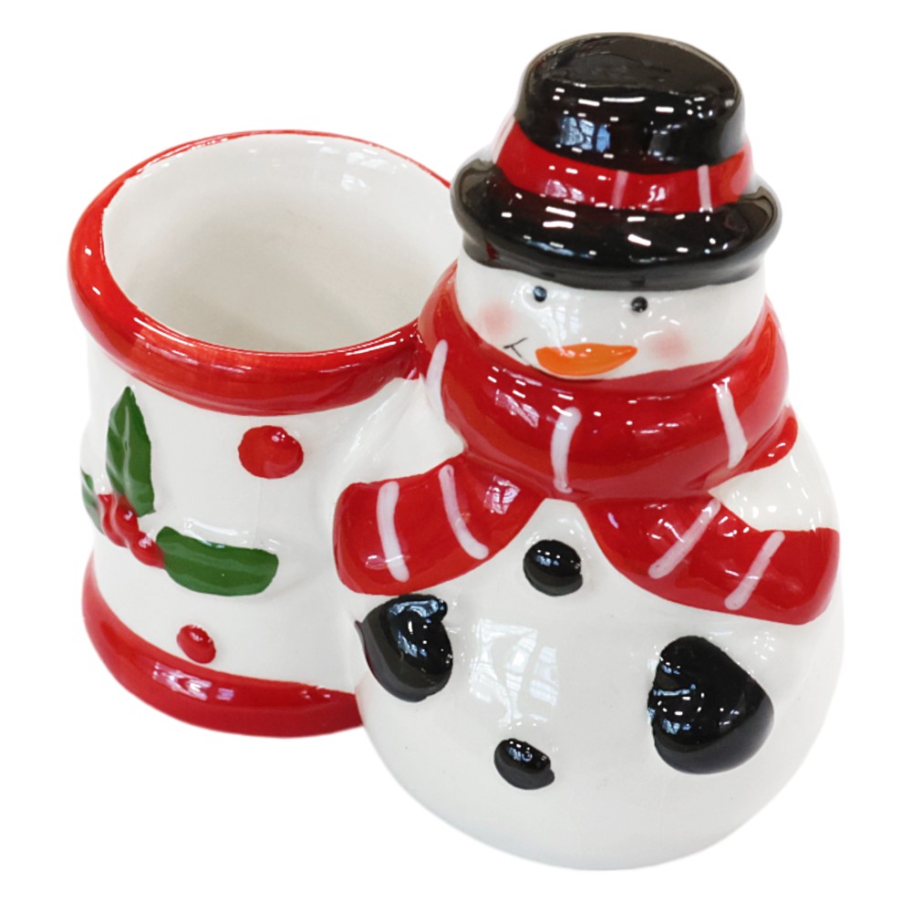 Jar with Christmas decorations, ceramics, white/red, 8x4xH8.5 cm