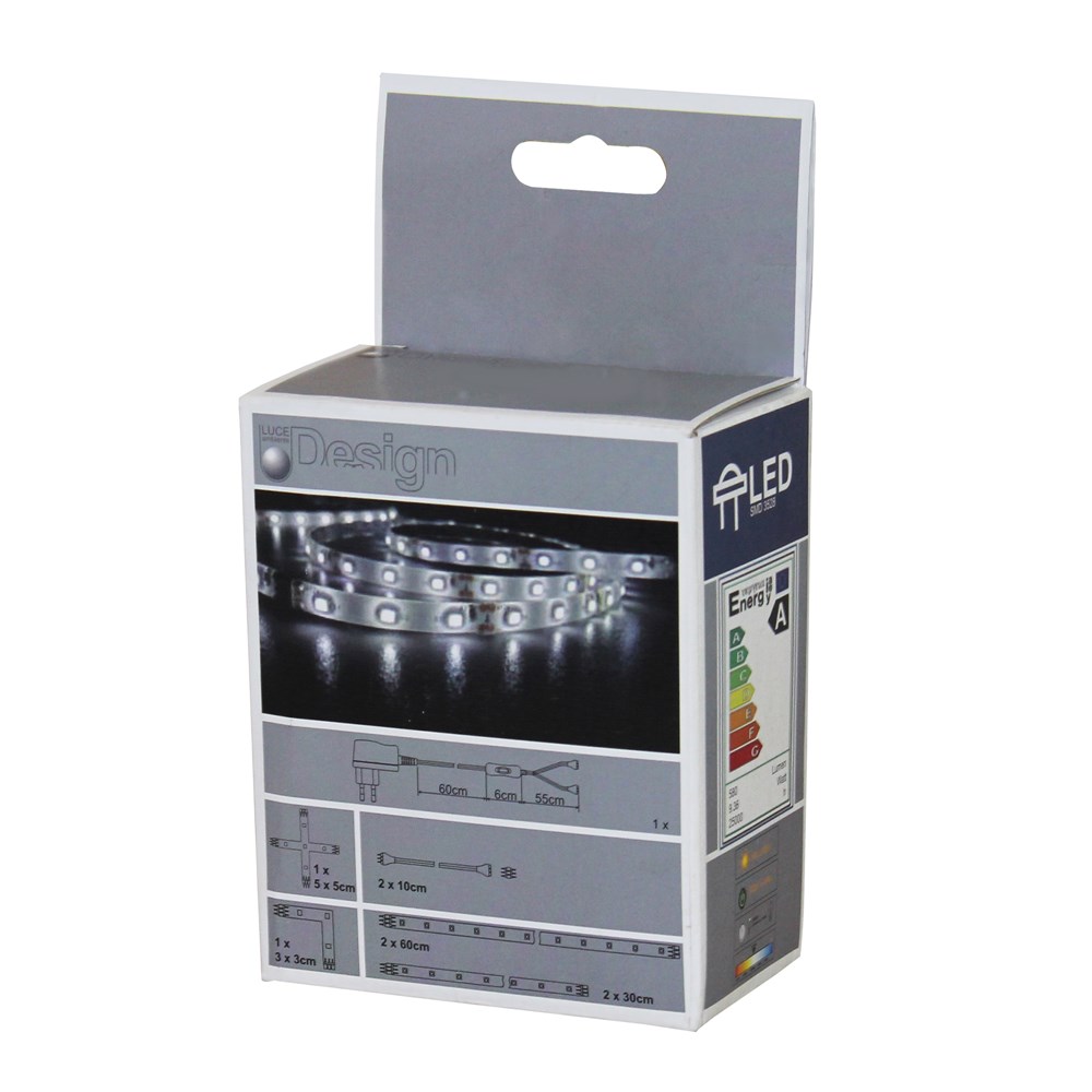 Led strip is an ideal choice to realize hidden lighting. This Led strip is made of 4 parts 2x60cm and 2x30cm and packaging includes transformer.