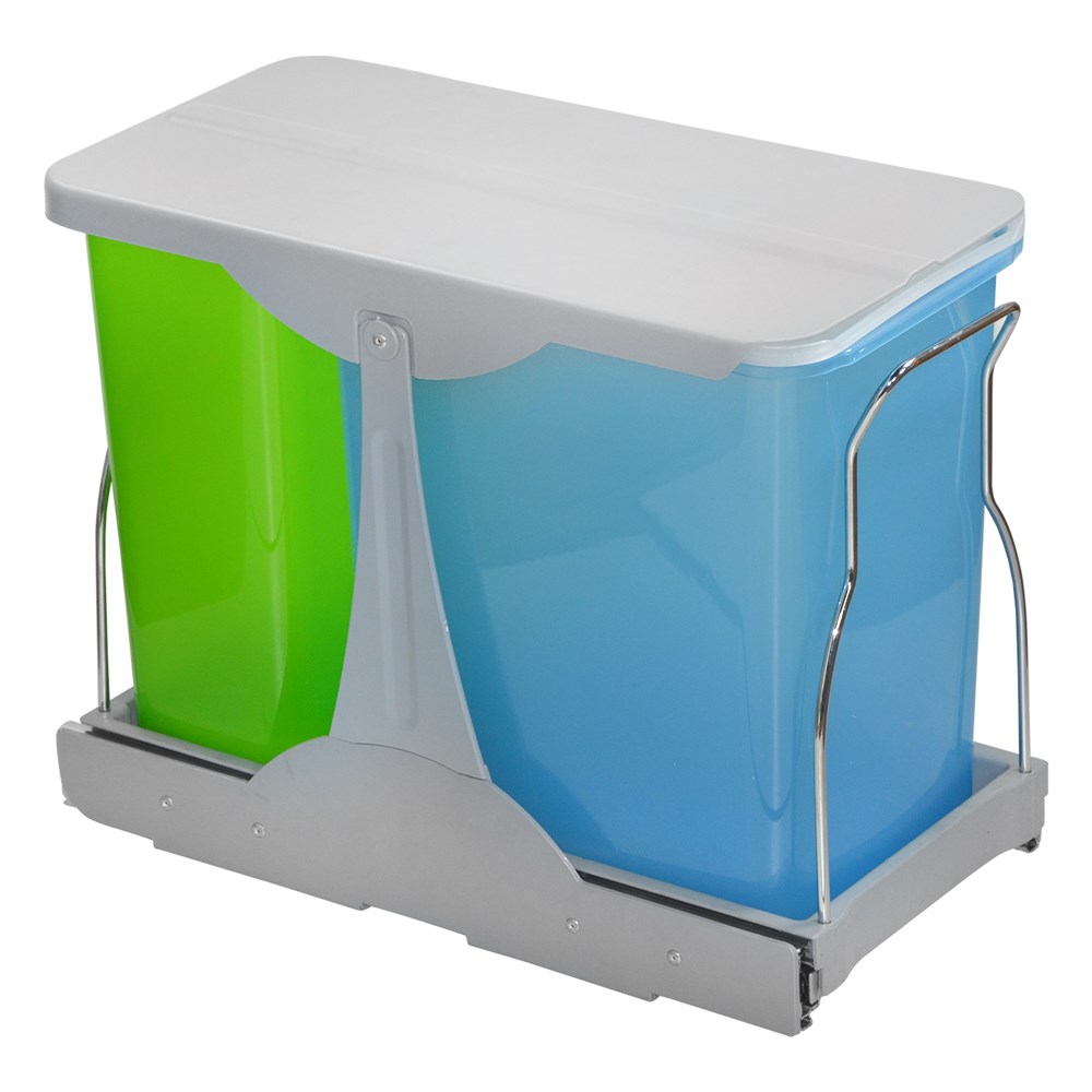 Kitchen plastic bins with structure mounted your kitchen cupboard, it is perfect for your kitchen. There are two bins inside the structure that opens in the moment that you open the sash and when you close the sash the bins get inside the cupboard. The bins can be removed easily from the housing.