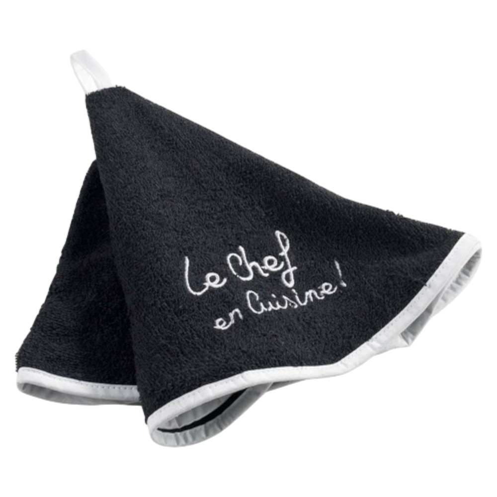 Kitchen hand towel is very important to wipe and clean your hands while cooking. This towel, with a circular shape and a diameter of 60 cm, offers enough surface to wipe hands easily. Made in black, it presents a clean and attractive look. Its size and shape make it suitable for the kitchen.