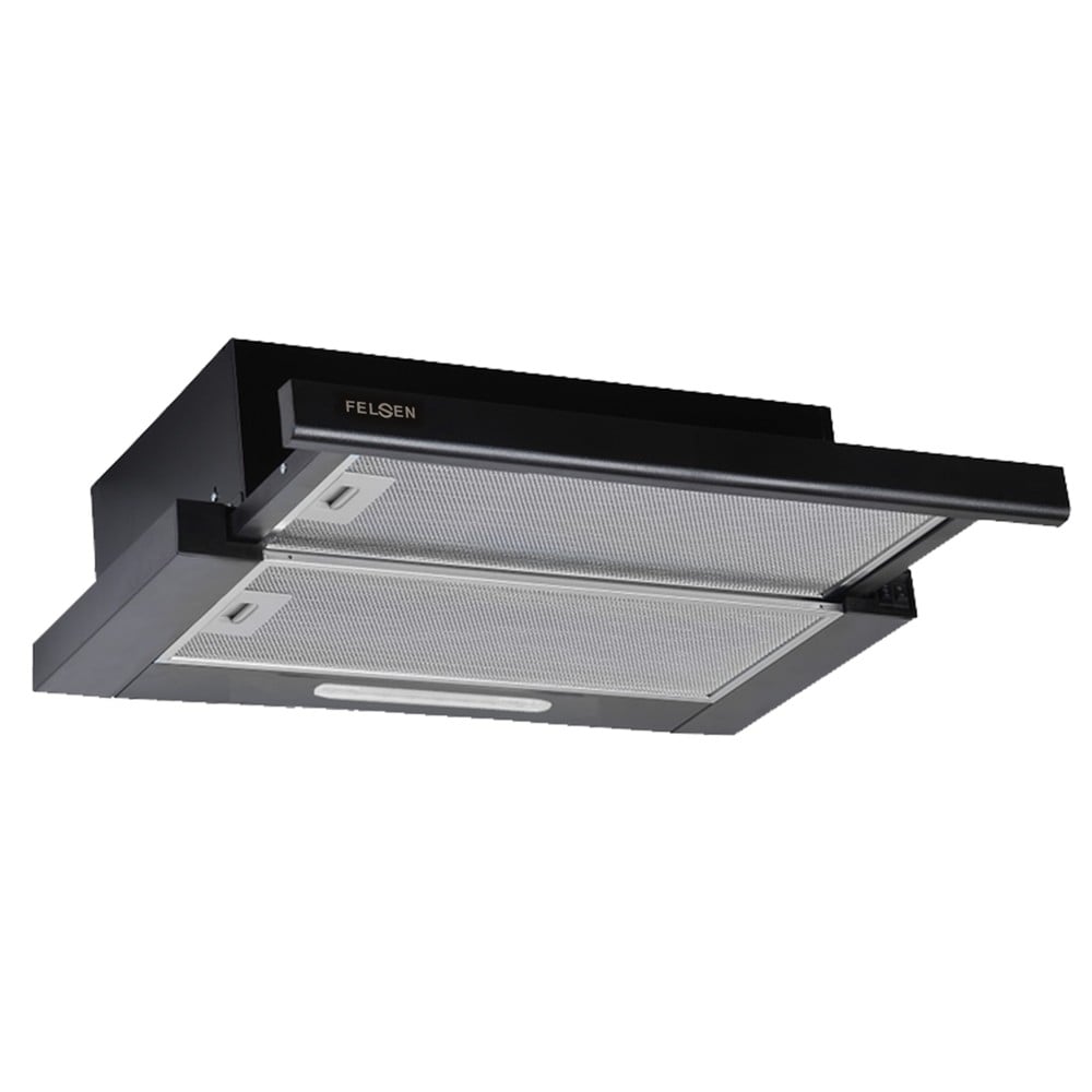 Felsen extractor hood, 60 cm wide, is installed horizontally. Filters are included in the package. Their aluminum construction increases their lifespan and makes cleaning easier.