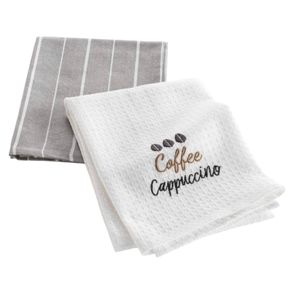 Kitchen towels in cappuccino and white colors bring a warm and stylish touch to your kitchen environment. Measuring 50x70 cm, they offer an excellent solution to clean and dry dishes and work surfaces. Made from cotton material, these towels are soft and absorbent, ensuring easy and efficient use in the kitchen.Cappuccino and white colors go well with many kitchen settings and add a warm and inviting touch.One pack contains two towels.