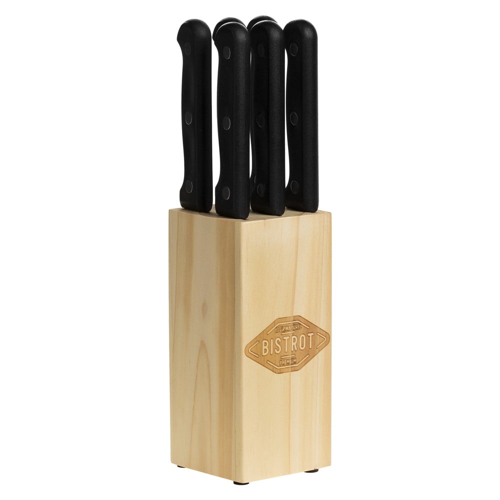 Add to your kitchen this set of 6 steak knives with wooden holder. This set is fantastic and should not be missing in any kitchen. 6 types of knives are included.