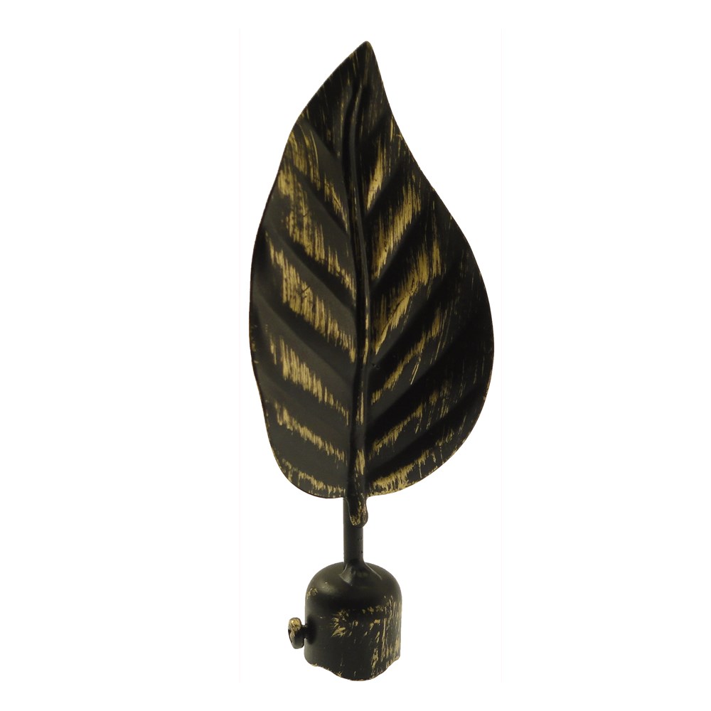 Knob for curtain rods, Foglia Lauro, metallic, black-gold, dia 20 mm